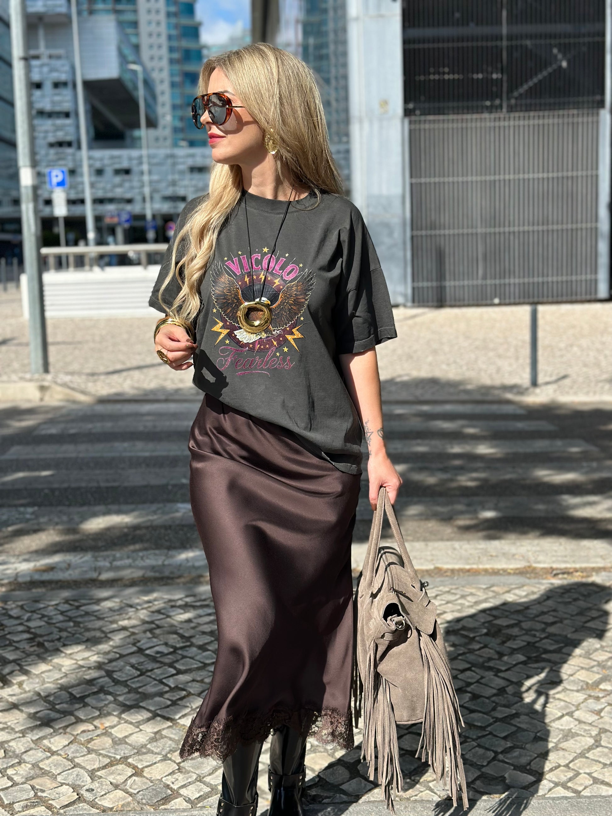Saia Castanha de Cetim Vicolo